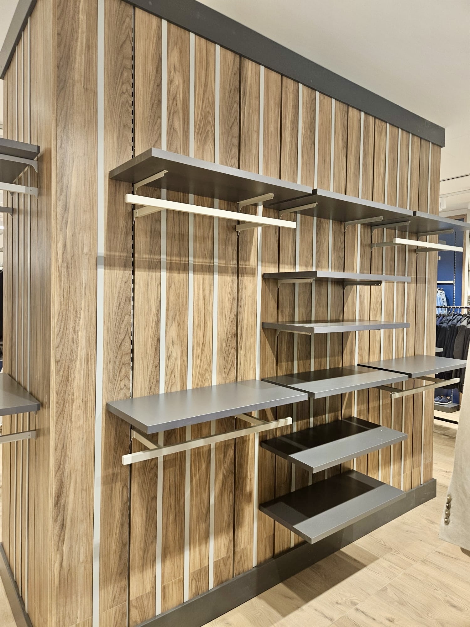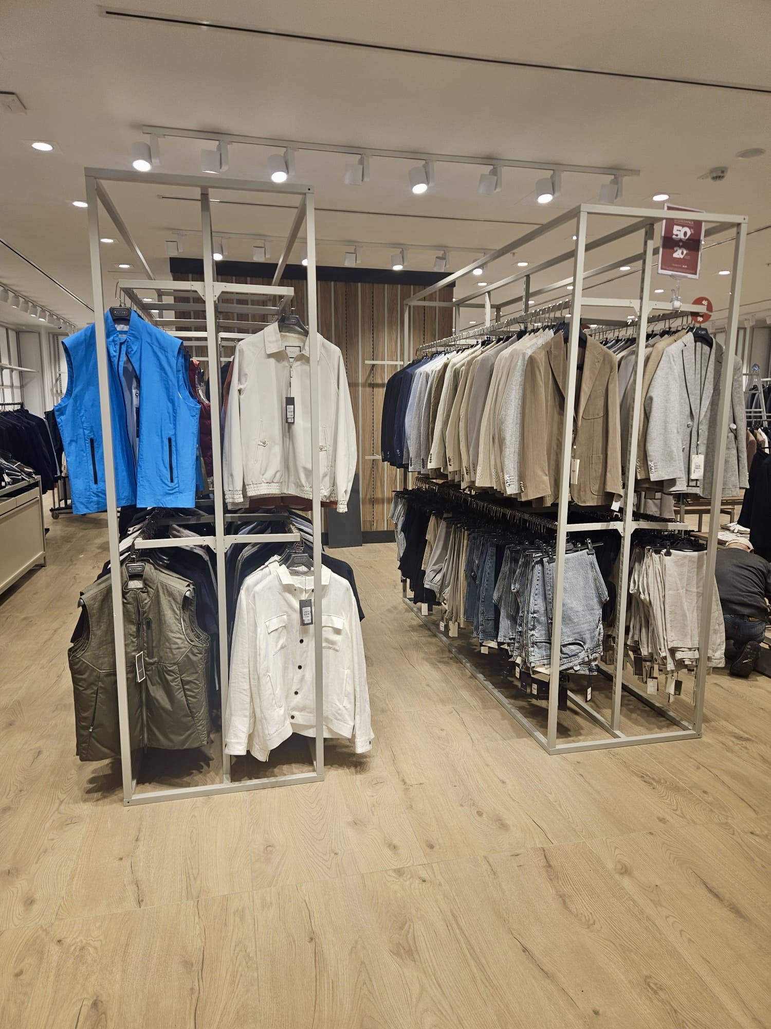 İzmir İstinye Park AVM'deki Under Armour mağazası tezgah, raf ve askılıkları.